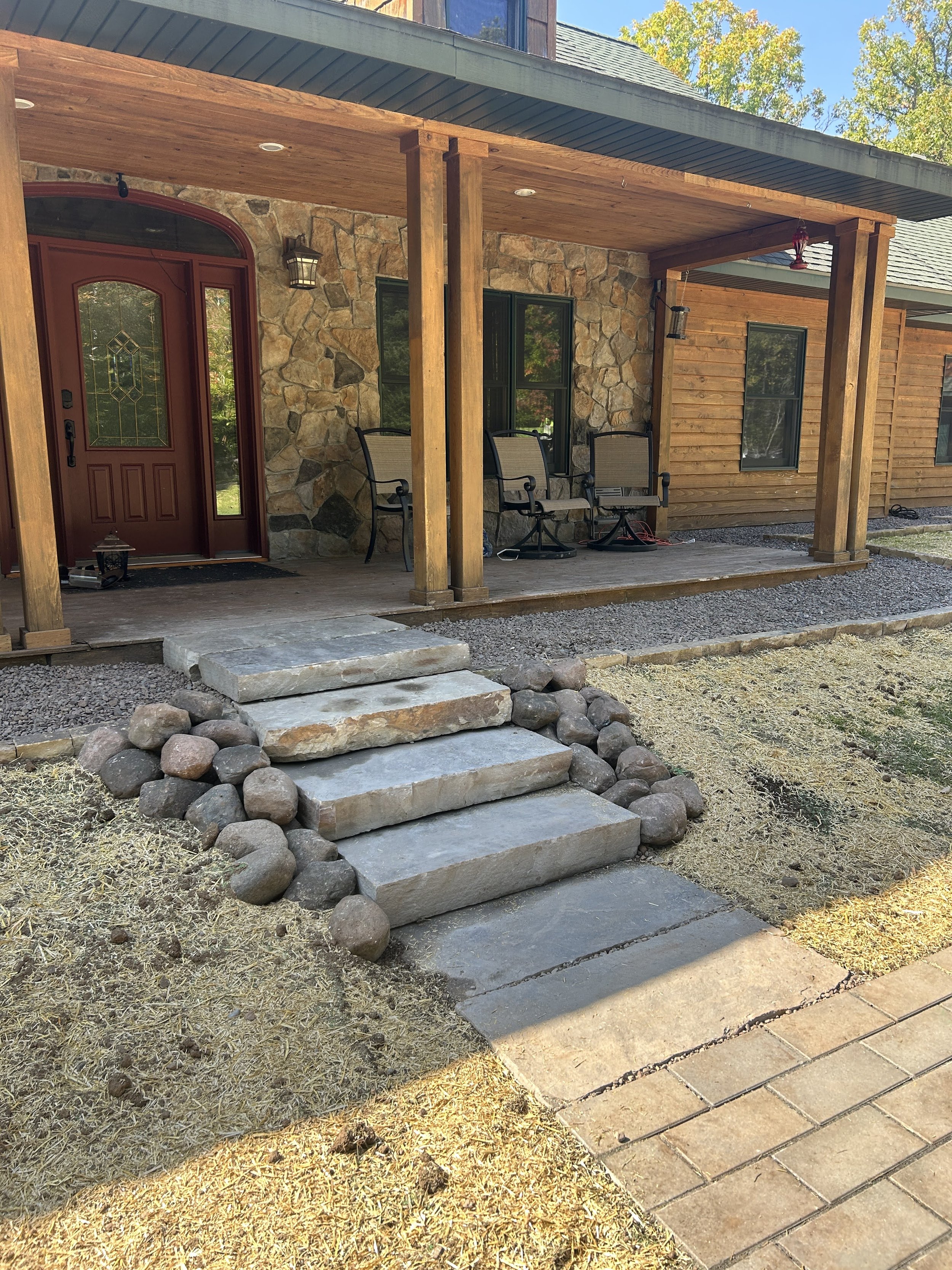 We build steps with natural stone, concrete, or pavers, depending on what fits the space and how it will be used. The layout follows the existing grade so it feels natural on the property. Each set of steps is built to stay in place and handle weather over time.